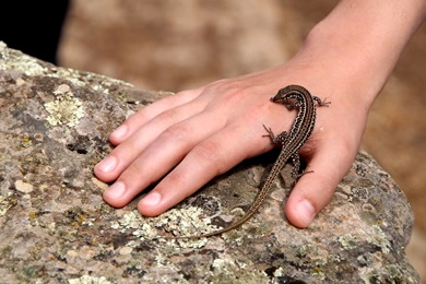 dieses Tier war sehr zutraulich - es kroch bei einem Jungen auf die Hand. |