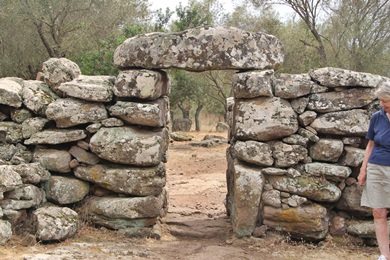 Das Nuraghendorf Serra Orrios befindet sich auf einer Hochebene ca. 10 Kilometer nordwestlich von Dorgali und gehört zu den bisher größten gefundenen Bronzezeit-Dörfern der Insel. Die Anlage ist recht weitläufig und der leichte Spaziergang über das Gelände - gegen einen kleinen Obulus - und durch die engen Gassen zwischen den bronzezeitlichen Hüttenbauten war für uns sehr interessant. Teilweise ist die Anlage von Sträuchern und Büschen zugewachsen. Nachdem man das Tor durchschritten hat trifft man als erstes auf einen rechteckiger Tempel , der von einem großen Hof umgeben ist. Das ist anscheinend für Sardinien ungewöhnlich. Unsere Führerin sagte, dass sich auf dem Gelände fast 100 Steinhütten befinden. Einige davon wurde in jüngster Zeit für den Tourismus wieder aufgehüpscht. Unter der Erde liegen noch einige Zisternen. Zu sehen ist auch ein altes Wassersammelbecken. Ungewöhnlich ist, dass es auf dem Gelände keine Nuraghen (Türme) gibt. Warum konnten wir nicht in Erfahrung bringen.