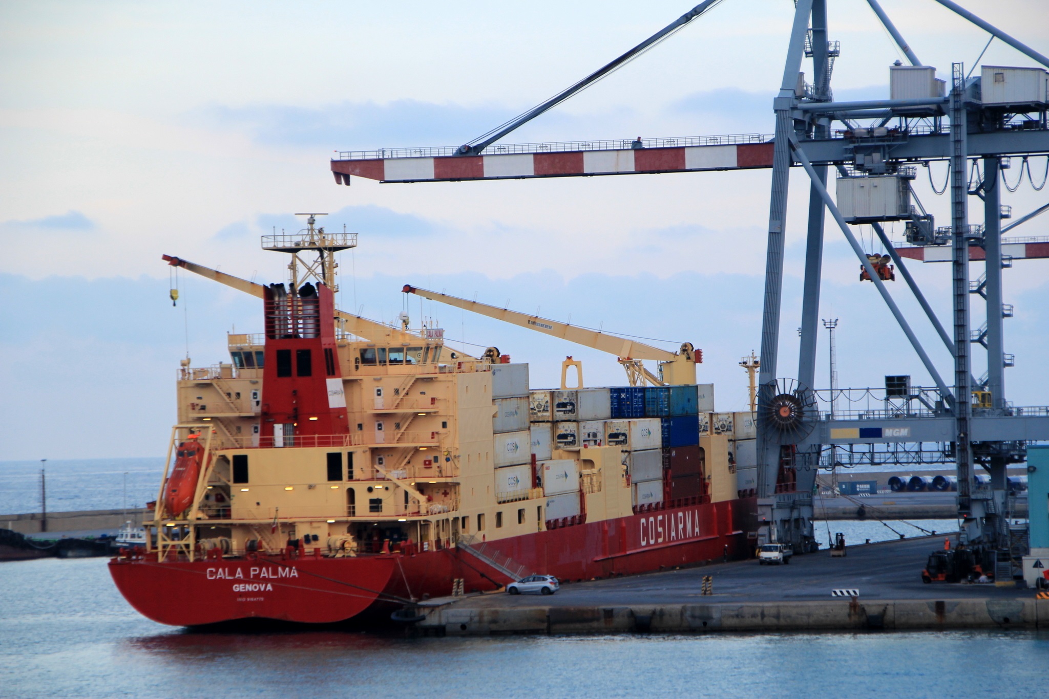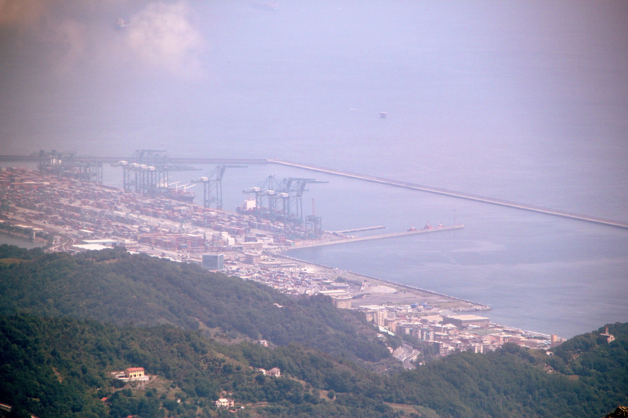 Von weitem - mit Tele aufgenommen, der Fährhafen von Genua |