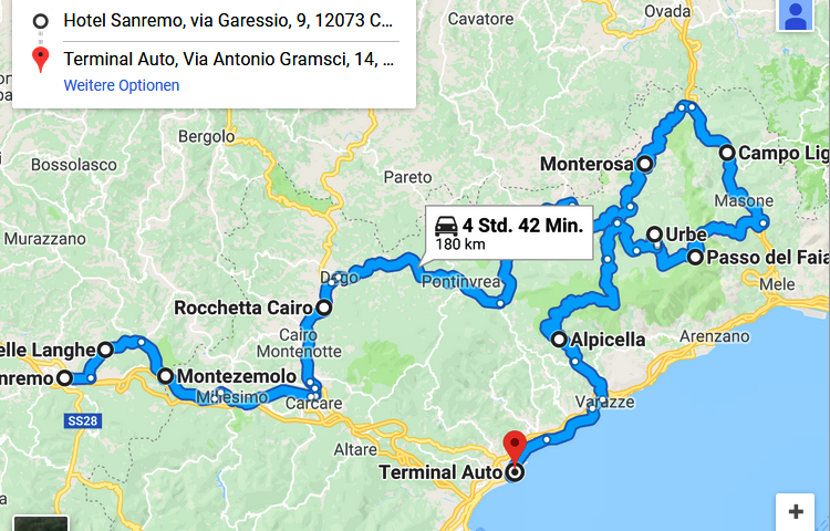 Ceva im Piemont -Hinterland Genua/Savona - Savona Fährhafen ca. 150 km