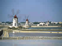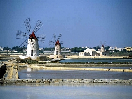 Diese Reise führte uns mit der 5*(Sterne)-Fähre von GNV (Grandi Navi Velocci) von Genua nach Palermo auf Sizilien. Kein Vergleich zu manchem Seelenverkäufer (alte Fähre), der wahrscheinlich noch irgendwo im Mittelmeer umherdümpelt. Die Kabinen waren entsprechend der Kategorie schön ausgestattet. Die Verladung des Fahrzeuges ging schnell und nun hatten wir ca. 23 Stunden Zeit bis zur Ankunft in Palermo. Die Fähre hatten wir vorort am Hafen gebucht und dort wurden wir zu unserer Überraschung als "Trucker" eingestuft. Wahrscheinlich, weil wir unser Motorrad im Ford Transit beförderten. Das bedeutete für uns günstigere Preise und das Essen war ebenfalls schon inklusive!!!! Wir hatten uns natürlich nicht beschwert und so fing der Urlaub gleich gut an ;-). Nach einer ausgiebigen "Inspektion" der Fähre suchten wir am Abend wieder unsere Kabine auf. Die Nacht verlief ruhig. Einzig das Brummen der Motoren war zu hören. Am Anfang störte es, aber dann wurde es Gewohnheit ;-). Wir erreichten Palermo am nächsten Tag bei strahlendem Sonnenschein. Bereits bei Ankunft am Hafen konnte man das Pulsieren der Stadt fühlen. Als wir das Schiff verlassen hatten, war es aus mit der Ruhe - wir waren mitten im italienischen Großstadttrubel: Hupen, drängen, schimpfen und immer wieder huschten die Moppeds und Roller zwischen den Autos hindurch..... zum Glück fuhr Jochen, aber der schien auch schon genervt zu sein - also versuchte ich mich so ruhig wie möglich zu verhalten. Unser einziger Gedanke war: "Raus aus der Stadt". Gesagt getan und irgendwann hatten wir es endlich geschafft. So fuhren wir Richtung Trapani, unserem ersten Etappenziel auf Sizilien. In der Nähe von Trapani (Valderice) übernachteten wir in einem kleinen Hotel mit dem Namen Baglio SantaCroce. Am frühen Abend wollten wir nach Erice, einem kleinen aber feinen Städtchen ca. 752m hoch über dem Meeresspiegel gelegen. Im Frühjahr wenn das Städtchen ab und an in Wolken gehüllt ist, dann ensteht eine ganz wunderbar nebelige Atmosphäre. Diese hatten wir am Abend auch kennen gelernt, denn der Nebel schien mit jeden Höhenmeter immer undurchdringlicher zu werden. Die Sicht war mittlerweile gleich Null. Deshalb drehten wir kuzer Hand um und gingen in der Nähe unseres Hotels in Valderice essen. Unseren zweiten Versuch nach Erice zu fahren starteten wir am nächten Morgen und da wurden wir mit einer tollen Aussicht belohnt. Unter uns sah man Trapani - Häuser soweit das Auge reichte und natürlich das tiefblaue Meer mit schönen Buchten und Stränden. Wir schlenderten durch das Städtchen. Der Mittelalterliche Stadtkern mit den engen Gässchen, den gepflasterten Wegen und alten Gebäuden ist absolut empfehlenswert. Am Nachmittag besuchten wir die Salinen von Trapani. Hier wird noch immer nach uralter Tradition Salz gewonnen.... und überall gab es Windmühlen....