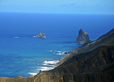 das wildromantische Anagagebirge und auf das Meer zu beiden Seiten..