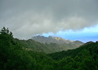 Das Anagegebirge ist meist dicht bewachsen und oft von Wolken verhüllt.