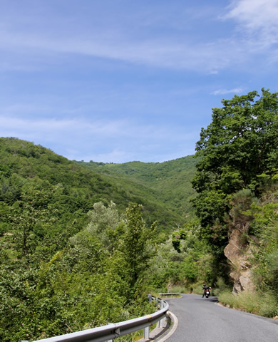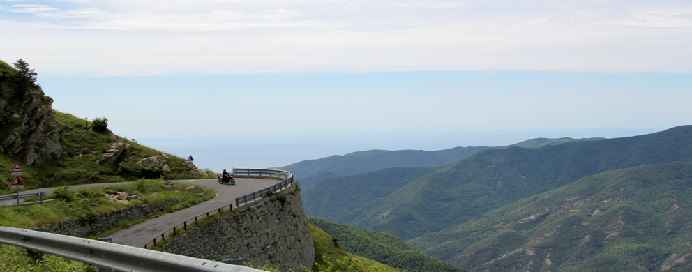 An diesem Tag wollten wir wieder Richtung Barcelonette zu Werner aufbrechen. Auf der Karte suchten wir uns wieder möglichst kleine Straßen aus. Das Hinterland von Ligurien ist ein wahres Paradies für einsame kurvenreiche Strecken. |