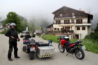 An diesem Tag war uns das Glück mit Übernachtungen nicht hold. Erst gegen 20:30h fanden wir in Beuil - im Hotel L'Esplanade - ein Zimmer. Wir freuten uns auf ein gutes Essen - doch dann folgte die französische Freundlichkeit: Die Küche hatte eben geschlossen, einige Gäste aßen noch! Bingo - wir waren den ganzen Tag nur gefahren und hatten fast nichts gegessen und dann soetwas. Die französische Hausherrin war nicht zu überreden. Da fiel uns ein, dass am Ortseingang von Beuil eine Kneipe/Pizzeria (Le Relais du Mercantour) war. Also schwangen wir uns nochmal aufs Gespann und fuhren dorthin. Das war die beste Entscheidung. Es war wieder ein Weltmeisterschaftsspiel, das vorort übertragen wurde. Wir verstanden wieder kein Wort, aber wir hatten sehr viel spass mit den Einheimischen, die uns immer irgendwas erzählten. Egal, die Pizza war lecker, der Wein genial und die Leute superfreundlich. Diesen Abend hätte das L'Esplanade nicht toppen können! |