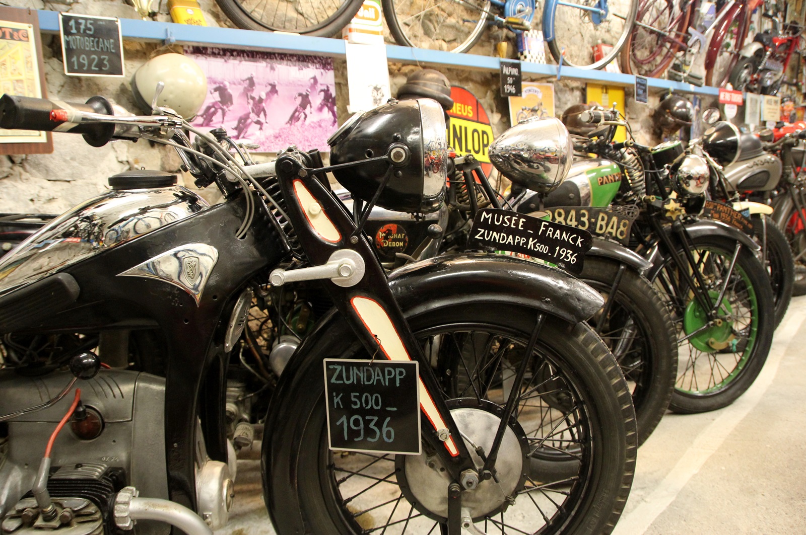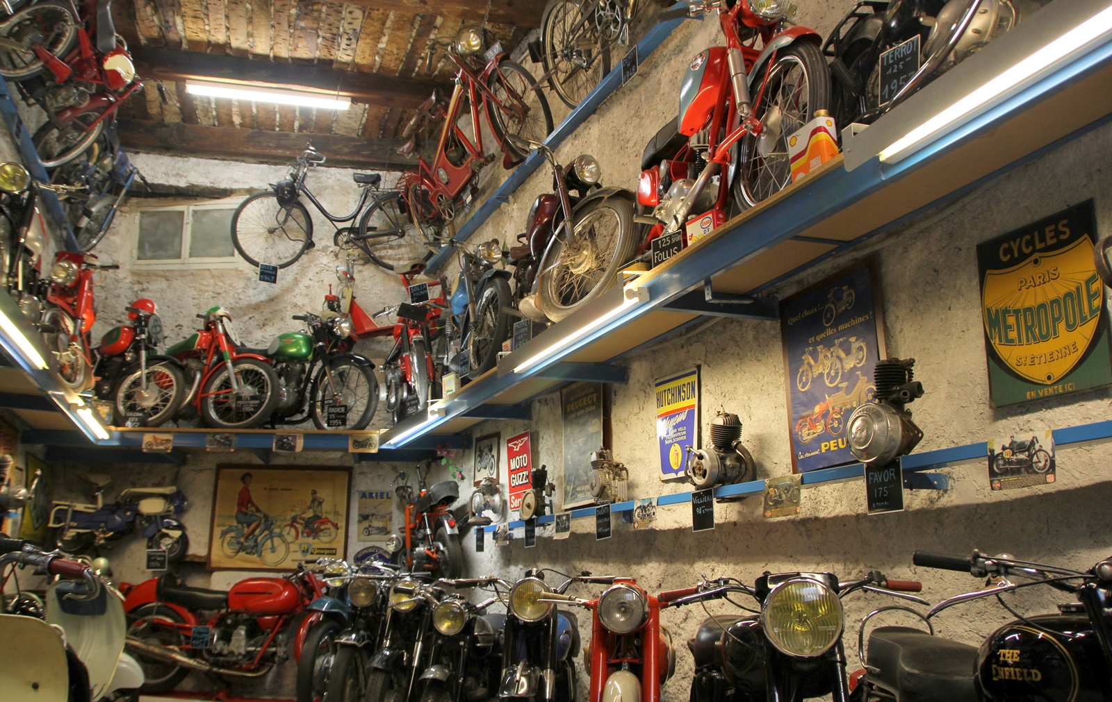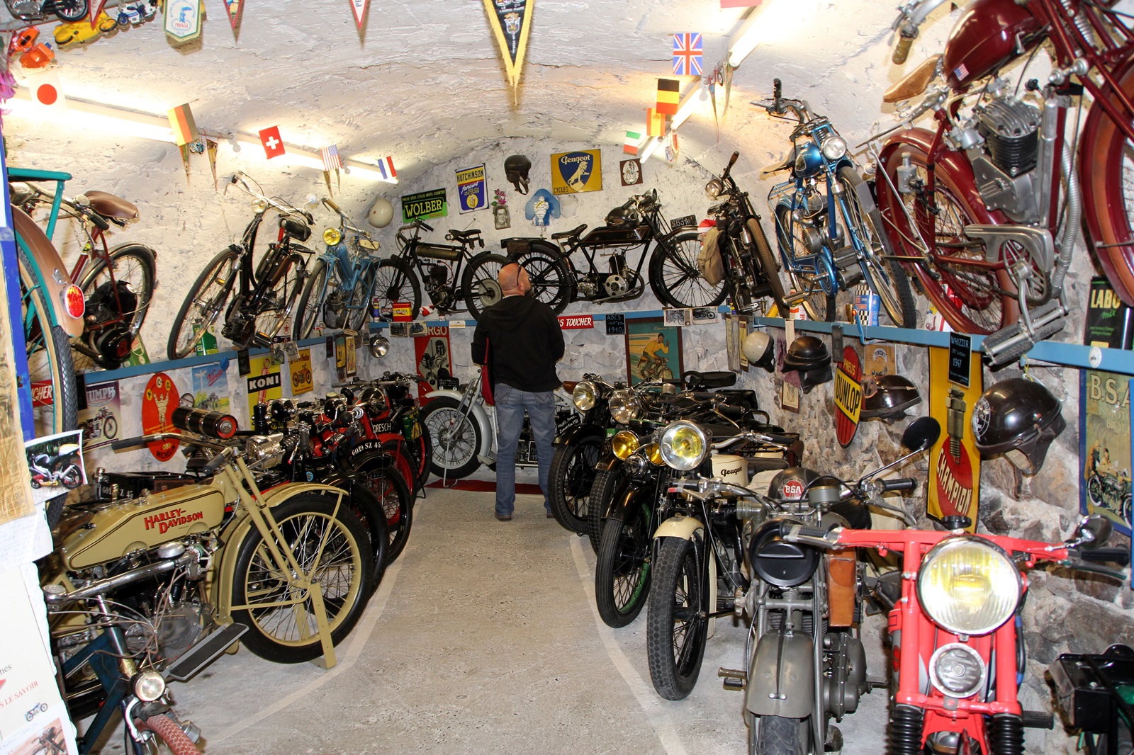 Räumlich gesehen ist das von den Gebrüdern Lucani betreibene Motorradmuseum das wohl kleinste der Welt. Die zwei engen Räume bzw. zwei Stockwerke beherbergen ca. siebzig, zum größten Teil motorisierte, Zweiräder vom Anfang des zwanzigsten Jahrhunderts bis in die siebziger Jahre. Es ist wirklich erstaunlich, welche Schätze hier auf engstem Raum untergebracht sind. |