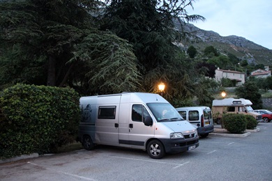 in Greolieres unser Übernachtungsplatz auf dem Dorfplatz