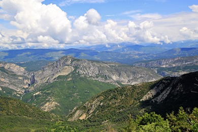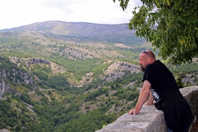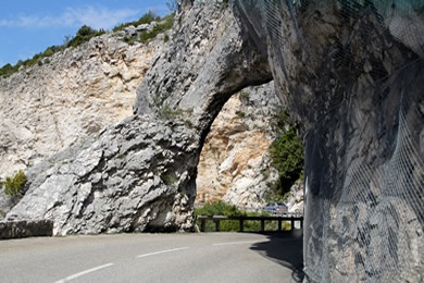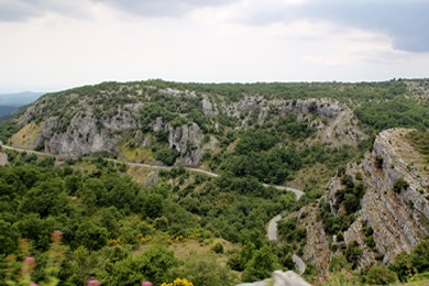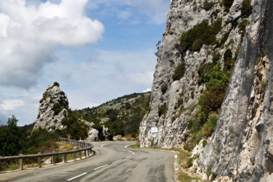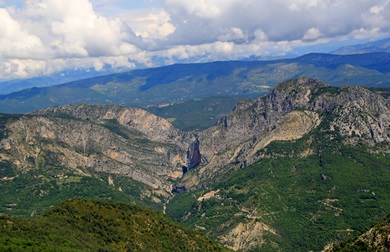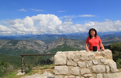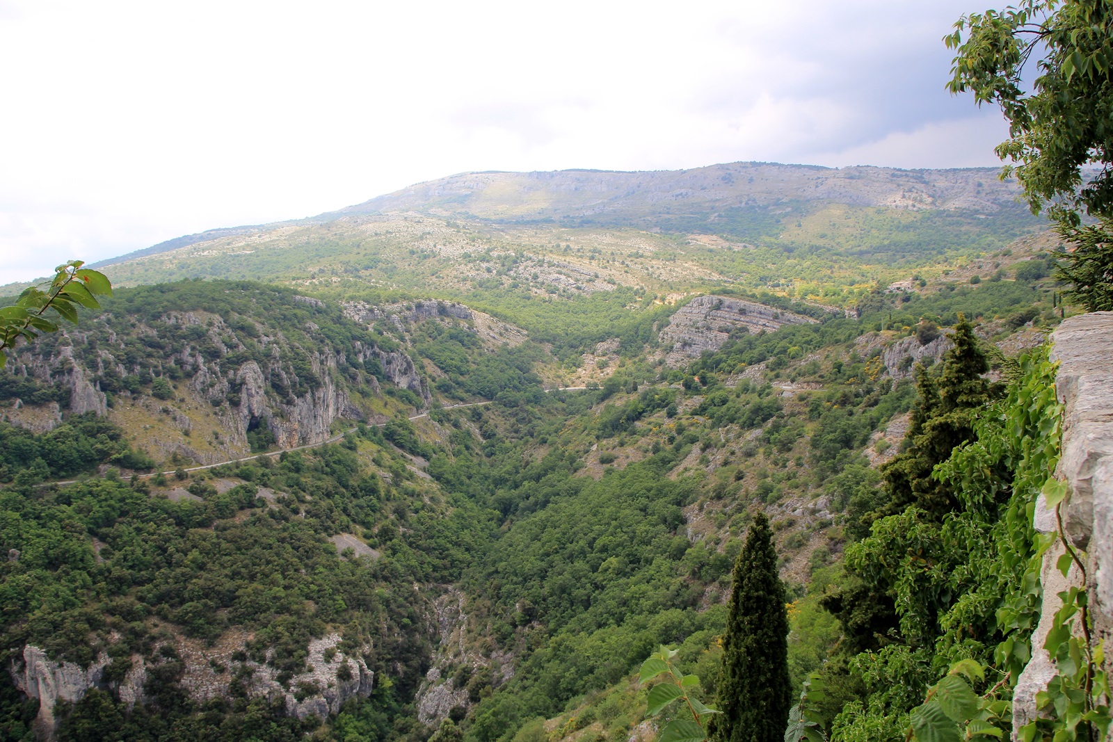 Aussichtsterrasse von Gourdon - die schmale weiße Line ist die Straße nach Gourdon |
