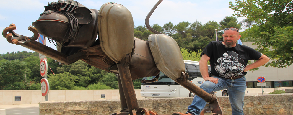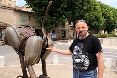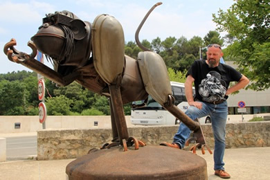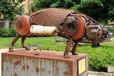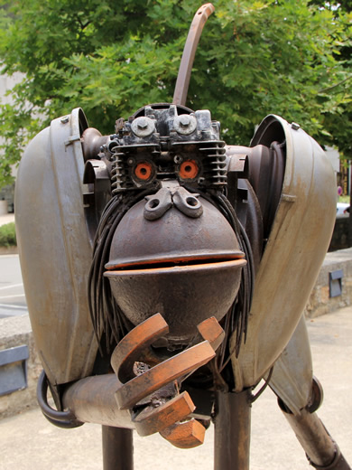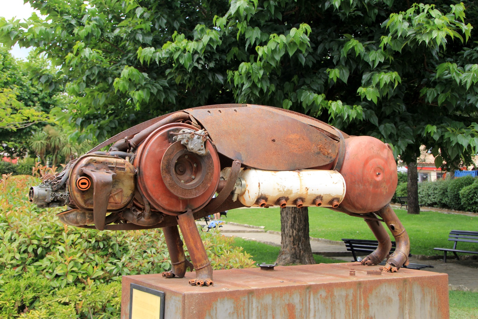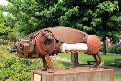 Figuren aus alten Auto-/Motorradteilen zusammengebaut. Hier ein Schwein. |